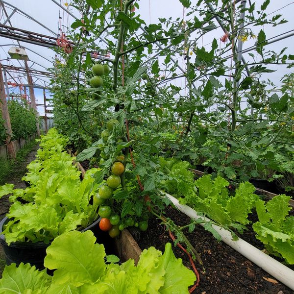 We grow in a variety of different systems, primarily relying on the passively and actively heated greenhouses built by the Gillespie family to ensure that we are feeding as many people as the land can support. Other measures that we take to ensure a successful season include succession planting, intercropping with different cultivars, and using lots and lots of compost to keep our soil microbes happy.